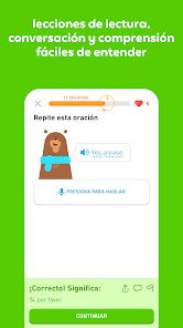 🎧 Material multimedia variado: La app no se limita a texto e imágenes. Incluye ejercicios de pronunciación (con reconocimiento de voz), podcasts para niveles intermedios y las ya mencionadas "Historias". Esta diversidad evita la monotonía y entrena diferentes habilidades lingüísticas de forma simultánea. 🗣️🎬
