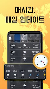 - 🔴 시간별 및 주간 예보: 단기 예보와 장기 예보를 모두 제공합니다. 특히 ‘시간별' 탭에서는 향후 48시간 동안의 강수 확률, 기온, 풍속, 습도 등을 1시간 단위로 확인할 수 있어 일정 계획에 매우 유용합니다.